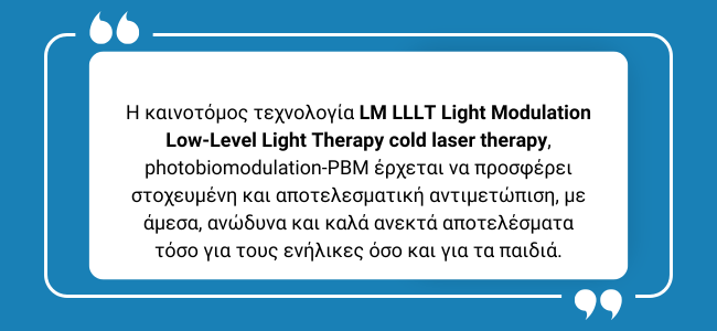Η σύγχρονη θεραπεία για τη ξηροφθαλμία και τη βλεφαρίτιδα εξελίσσεται δυναμικά, προσφέροντας λύσεις πέρα από τα παραδοσιακά κολλύρια και τις χρονοβόρες αγωγές. Οι δύο αυτές παθήσεις επηρεάζουν όλο και περισσότερους ανθρώπους, κυρίως λόγω της πολύωρης χρήσης οθονών και της αυξημένης περιβαλλοντικής επιβάρυνσης. Ωστόσο, η καινοτόμος τεχνολογία LM LLLT Light Modulation Low-Level Light Therapy cold laser therapy, photobiomodulation-PBM έρχεται να προσφέρει στοχευμένη και αποτελεσματική αντιμετώπιση, με άμεσα, ανώδυνα και καλά ανεκτά αποτελέσματα τόσο για τους ενήλικες όσο και για τα παιδιά.
